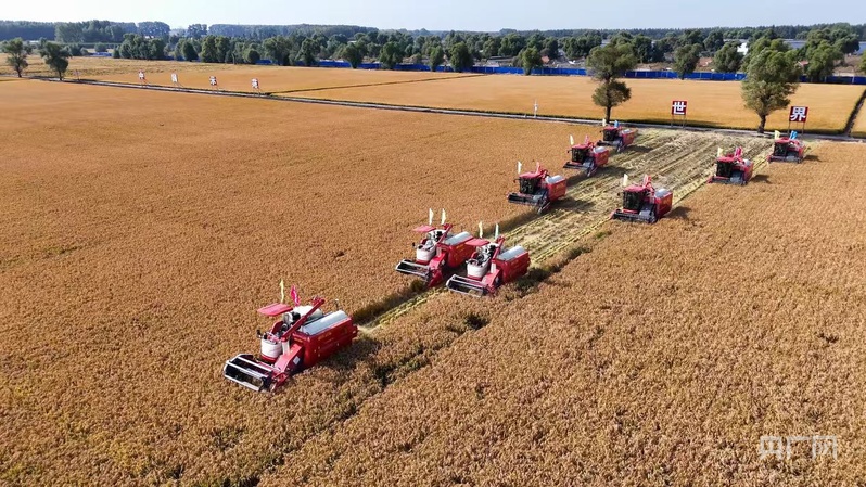 闫家岗农场水稻开镰收获(央广网发 北大荒集团闫家岗农场供图)