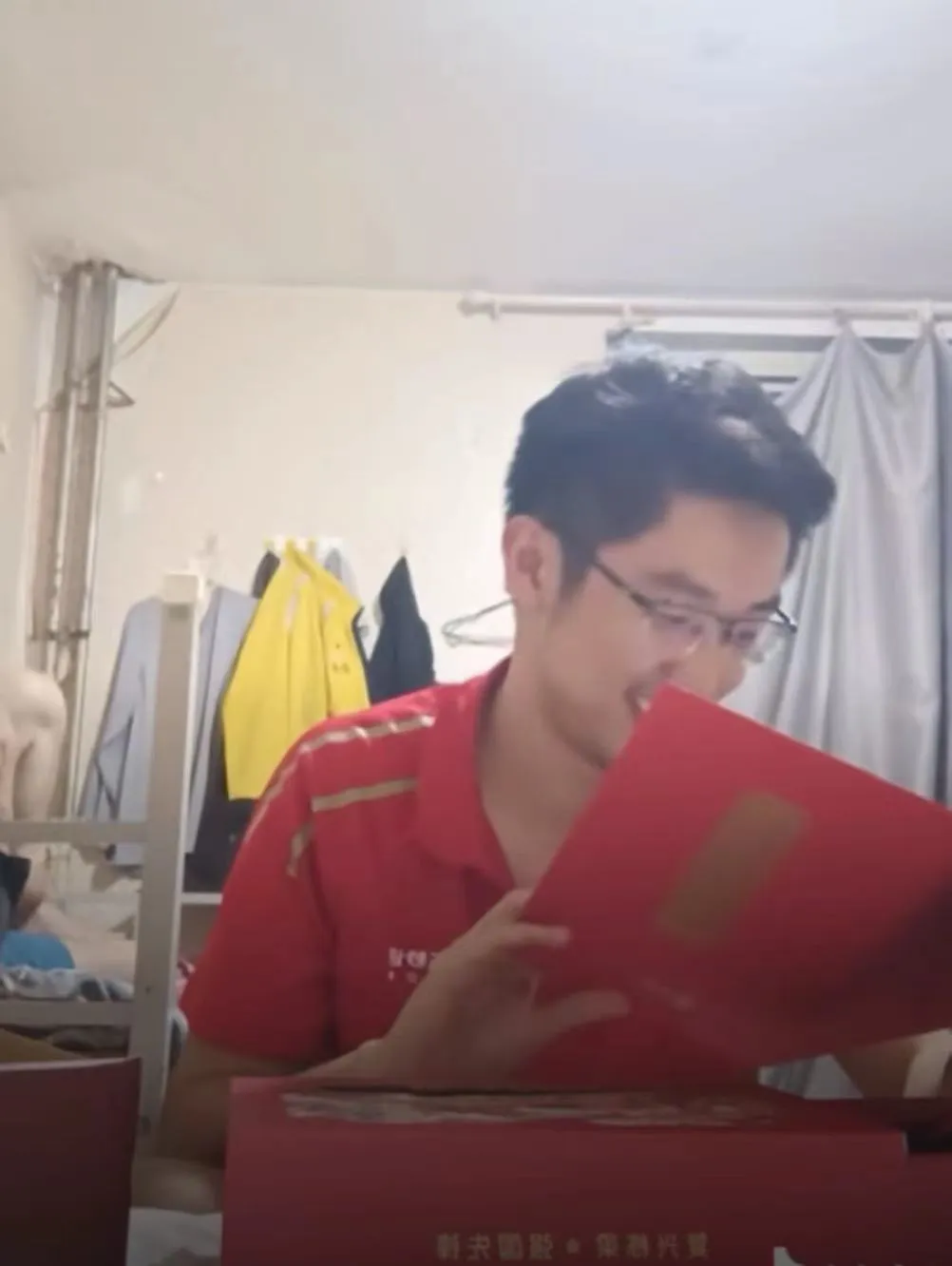 拆开人大研究生录取通知书那天,张舜禹还住在海淀区一处外卖员宿舍里,他对着镜头录下了“开箱”过程。