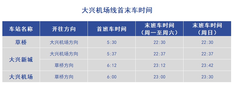 此次调整中,大兴机场线草桥站首班车时间由5:41提前至5:30,大兴新城站至大兴机场站方向首班车时间由5:48提前至5:37。首班车时间调整,充分考虑19号线、10号线首班车到达草桥站时间,保障草桥站换乘衔接顺畅,提升了大兴机场线的通达性。乘客可通过北京轨道运营官方微信服务号查看最新列车时刻表,合理安排行程。