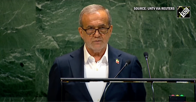 当地时间9月24日,伊朗总统佩泽希齐扬在第80届联合国大会一般性辩论上发表讲话。 图源:印度亚洲新闻国际通讯社视频截图
