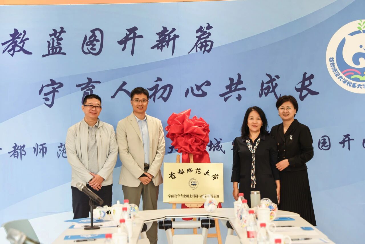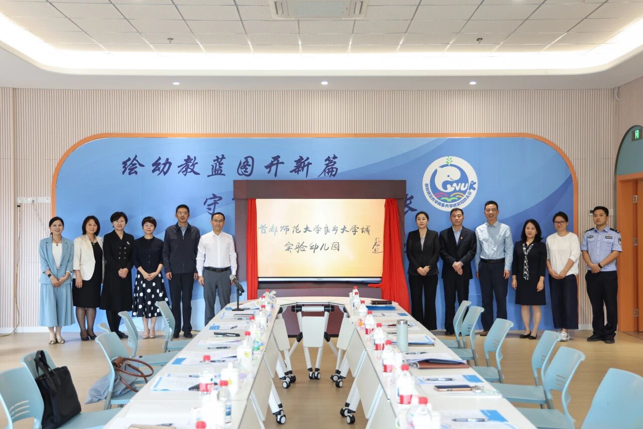 与会领导嘉宾共同为首都师范大学良乡大学城实验幼儿园揭牌,宣布园所正式启用。随后,首都师范大学学前教育研究生实训基地也挂牌成立,这一举措将实现“高校学术资源”与“幼儿园实践场景”的深度融合,为学前教育发展注入专业活力。