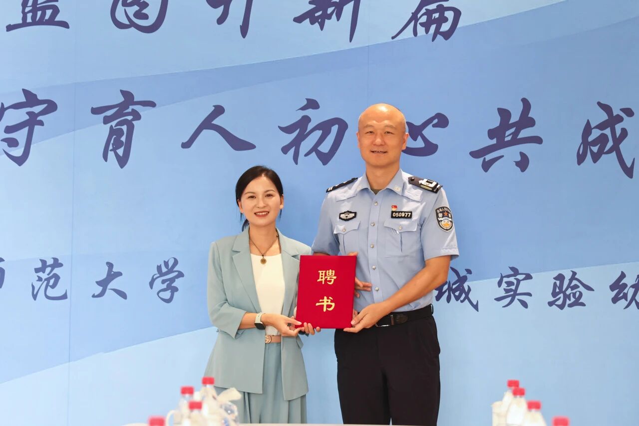 值得一提的是,为筑牢校园安全防线,幼儿园特别邀请拱辰派出所副所长刘凯担任法制副园长,执行园长张露霞代表幼儿园向其颁发聘书。法制副园长的加入,将助力幼儿园构建更完善的安全防护体系,让家长放心、社会安心。