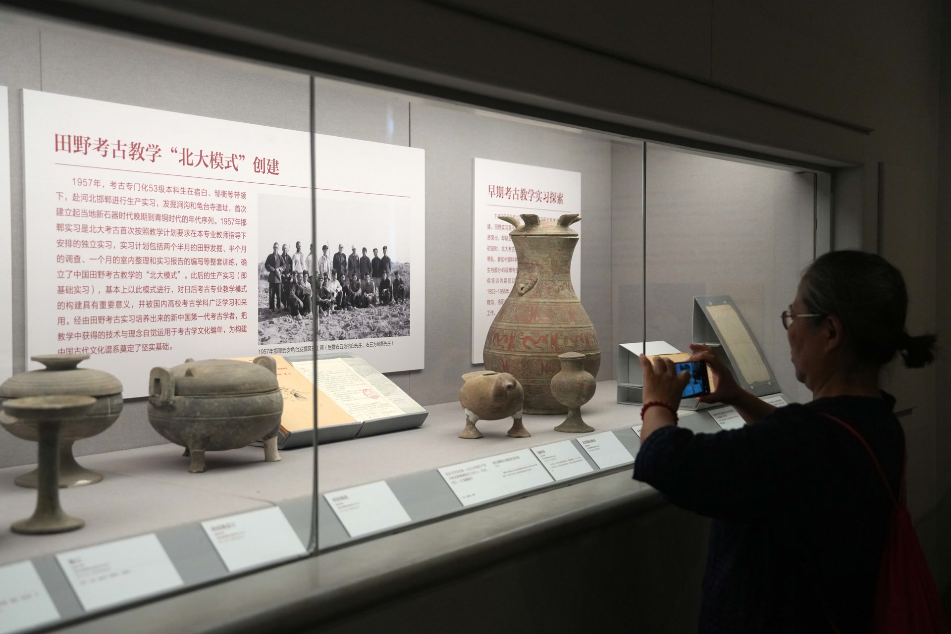 目前,“北京大学考古100年 考古专业70年”特展正在展出。北大考古文博学院院长沈睿文说,北大在1922年设立考古学研究室,距今已有百余年;1952年成立全国高校首个考古专业,距今已有70余年。考古专业成立后便开展田野考古教学实习,让学生在考古实践中锻炼技能、掌握知识。