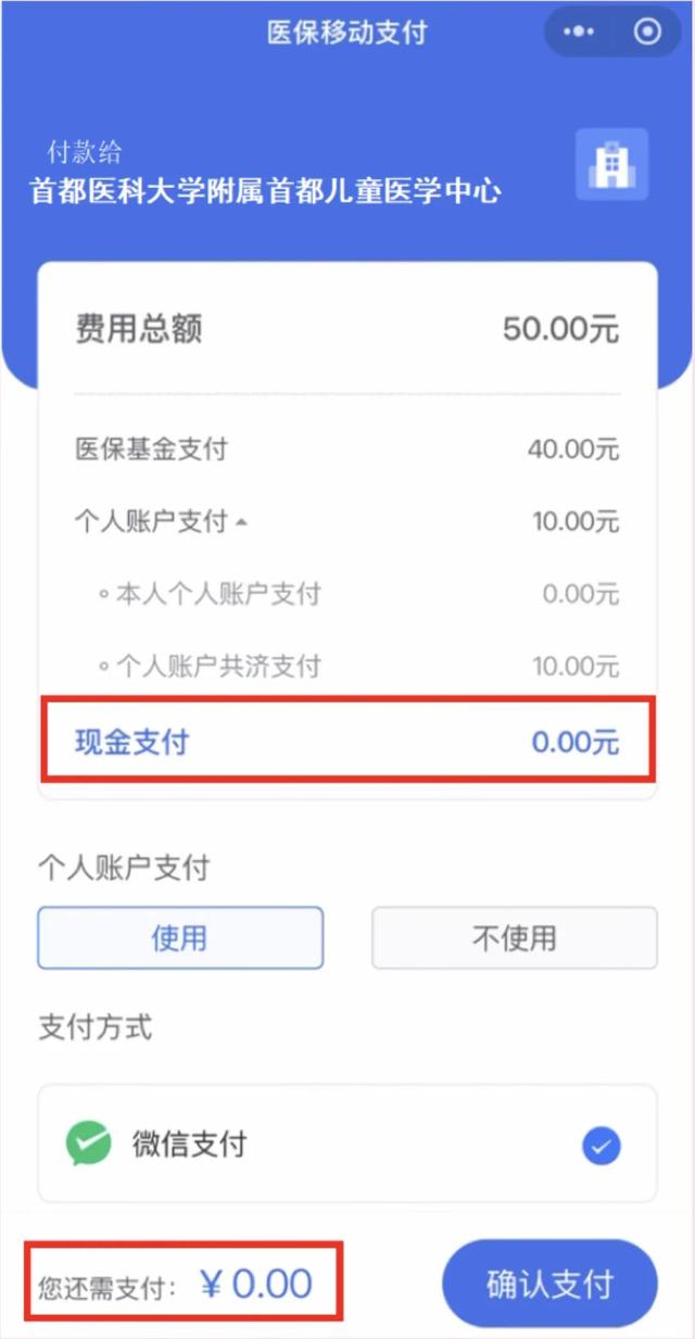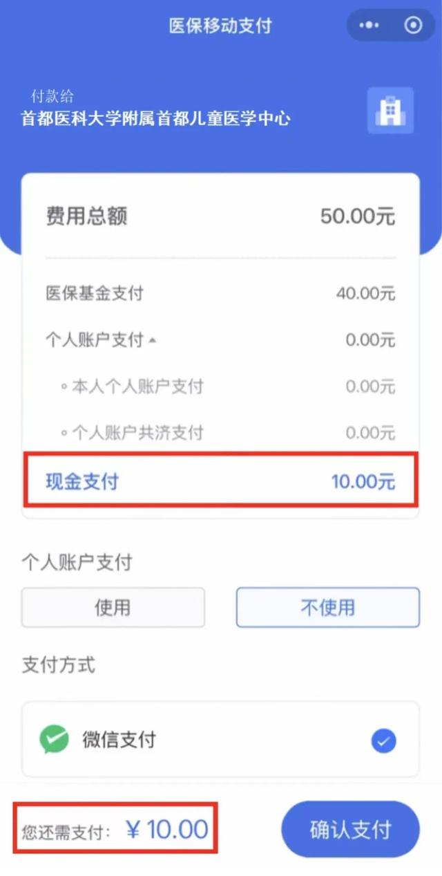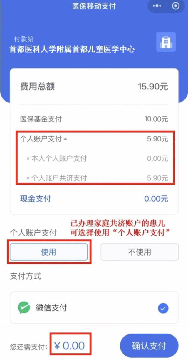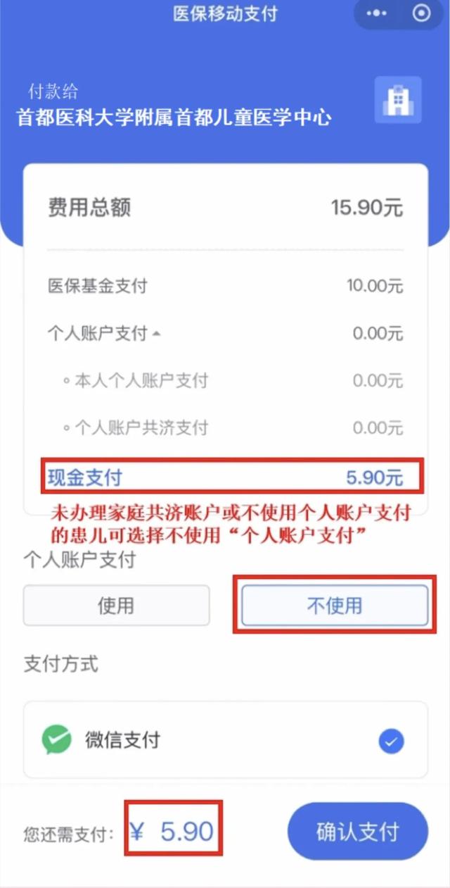 首都医科大学附属首都儿童医学中心是北京市首批、朝阳区首家开通此服务的医院。通过此项服务,既解决了低龄儿童不具备本人微信账户和银行卡,无法享受医保移动支付的问题,也减少了家长在窗口和自助终端缴费等候时间,为北京医保患儿提供了更便捷的支付渠道。