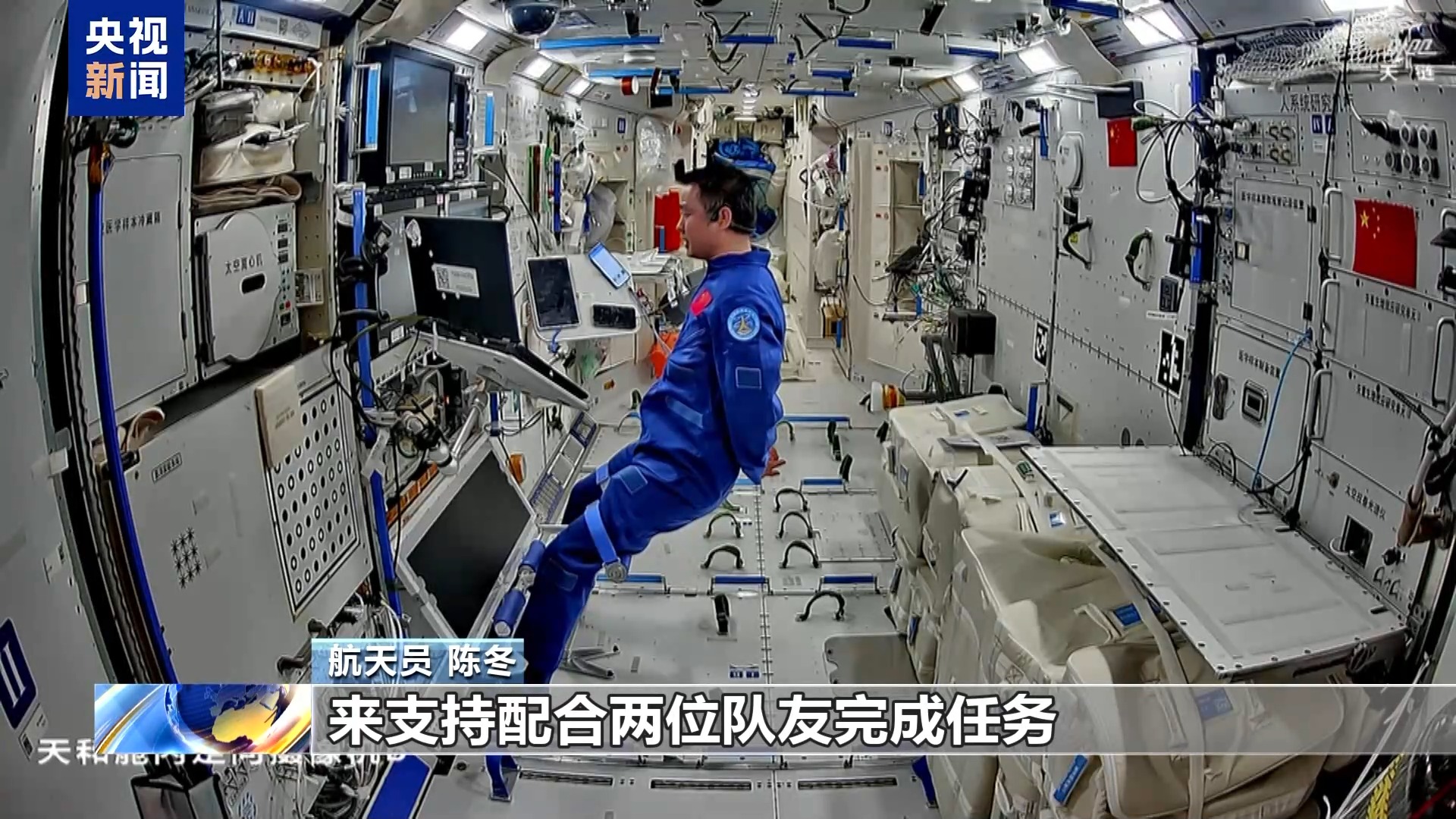此次出舱先后完成了空间站空间碎片防护装置安装、舱外设备设施巡检等任务,这是首次由两名第三批航天员共同完成舱外作业任务。其间,航天员陈冬在天和核心舱内进行支持。