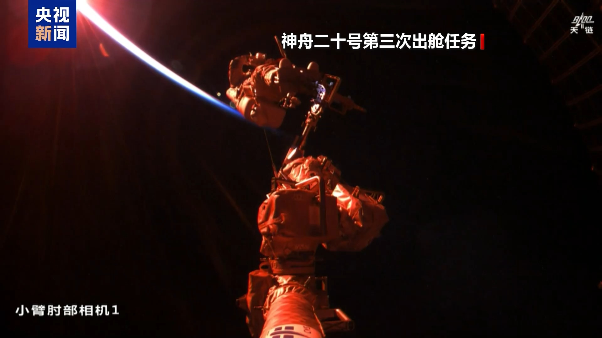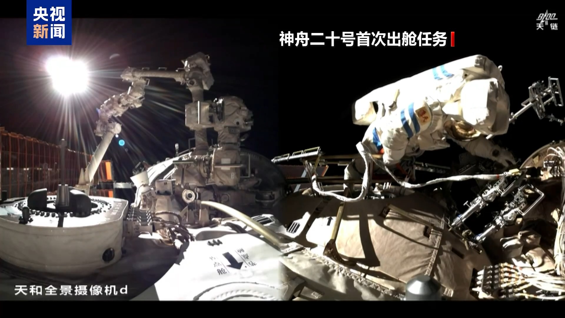 2025年5月22日16时49分,经过约8小时的出舱活动,神舟二十号乘组出舱航天员陈冬、陈中瑞在舱内航天员王杰的密切协同下,在地面科研人员支持下,圆满完成了乘组的第一次出舱任务。
