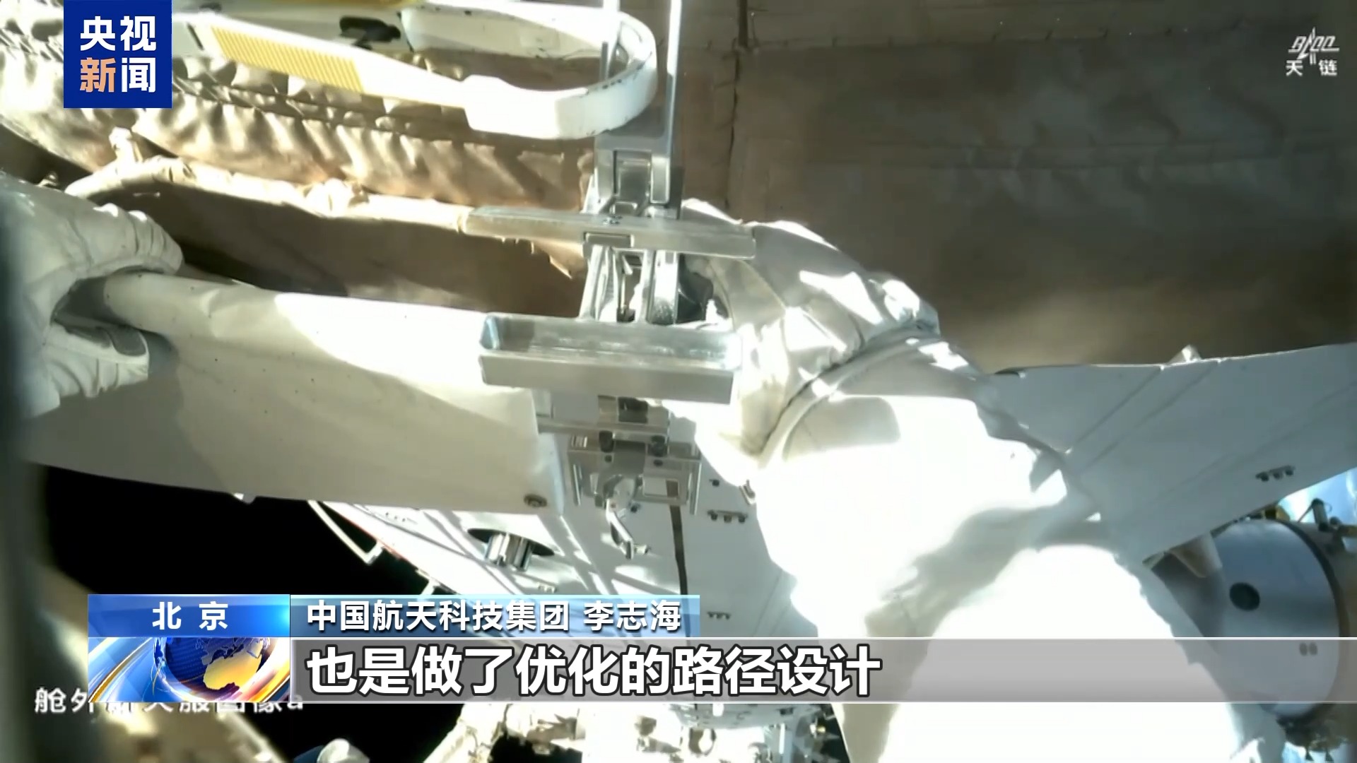 中国航天科技集团 李志海:这次相当于是在装完自动脚限适配器以后第一次使用天和舱的机械臂适配器,去支持这次出舱任务,所以整个路径规划是新的。同时由于这次安装防护板的位置相对比较集中,所以机械臂也做了优化的路径设计,出舱作业的效率会更高,也能节约更多时间。这次出舱活动完成以后,我们在整个空间站问天舱段之前规划的碎片防护装置,都已经完成安装了。完成了一项阶段性工作。