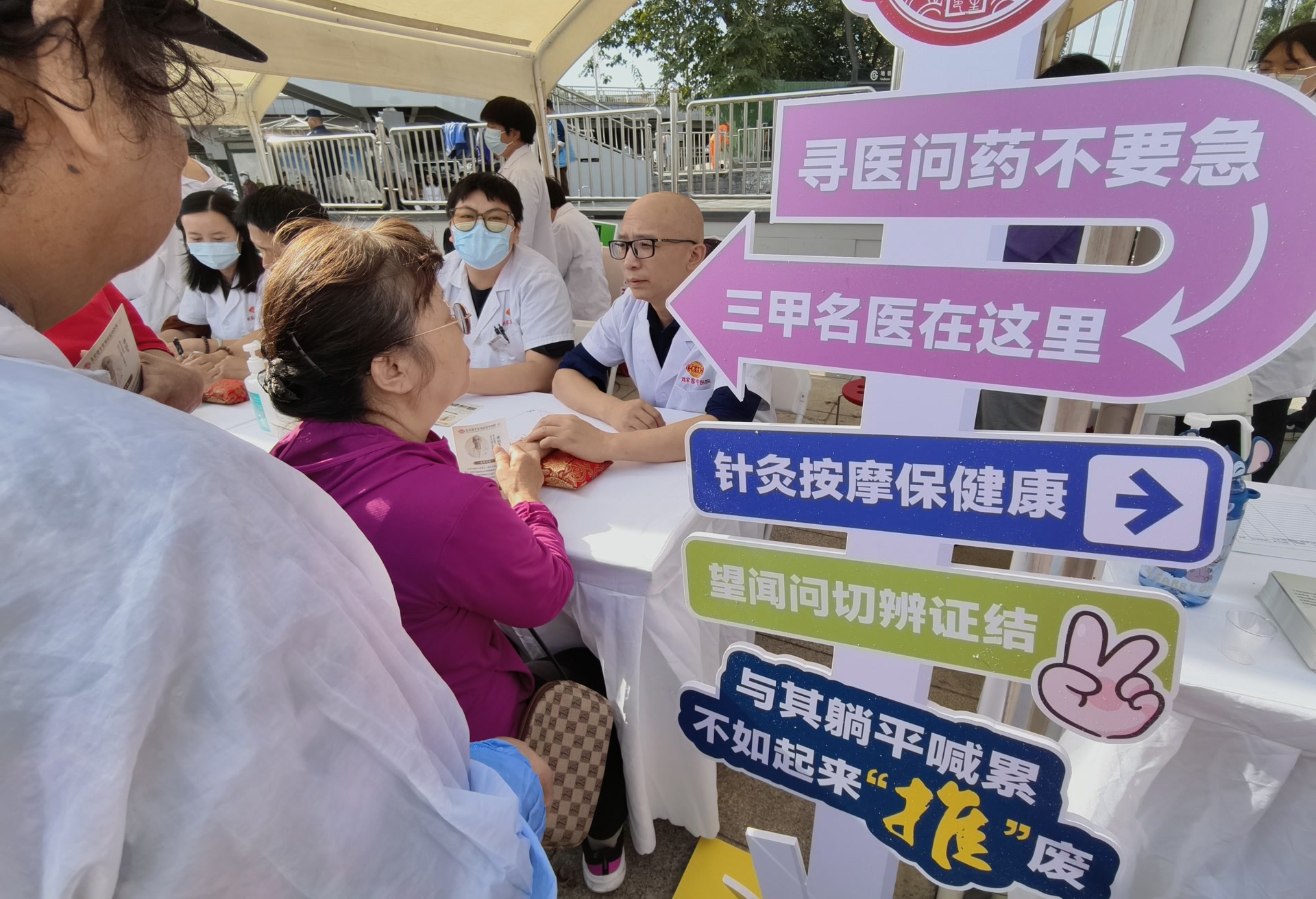 “闻·名医讲座区”,多位中医药领域权威专家现场开讲,介绍中医药康养核心知识。“问·中医企业特色展示区”则汇聚了同仁堂、恩生堂等区域重点中医药企业和南阳中医药代表企业,养生代茶饮、药膳食品、草本香薰等体验品琳琅满目。“切·名医义诊互动区”最受欢迎,多名中医专家坐诊,提供免费切脉、舌诊、推拿、针灸等中医诊疗服务。