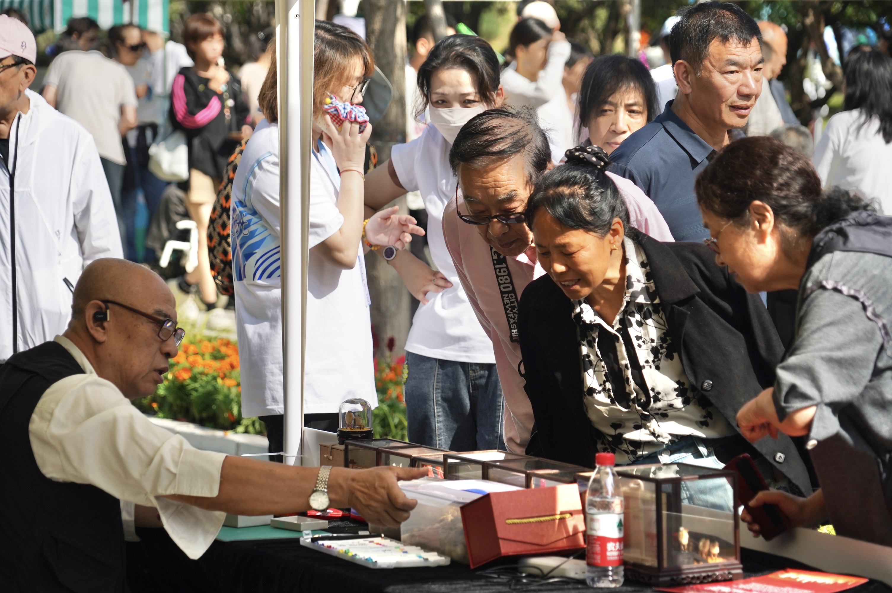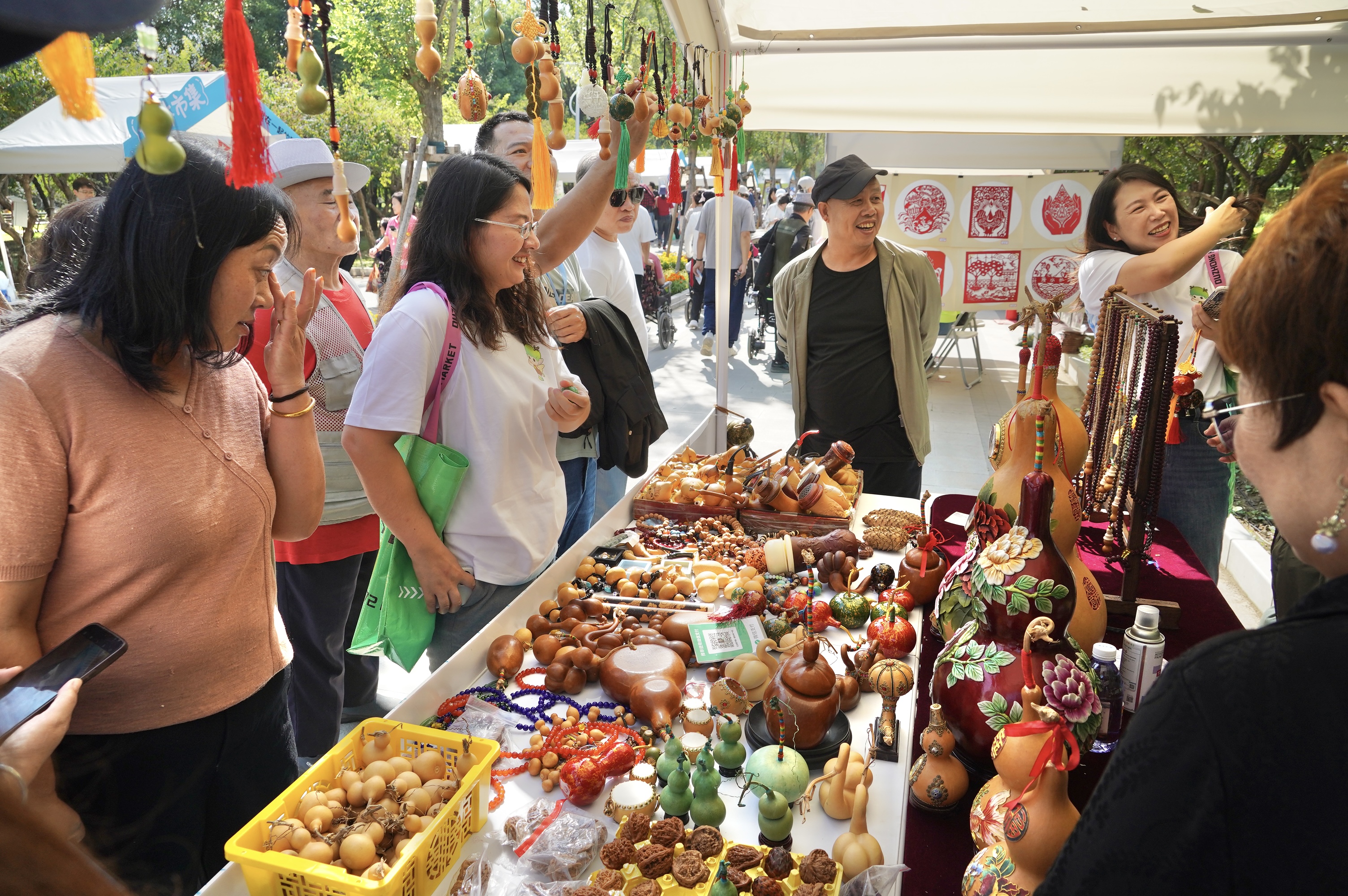 市集区域以“非遗传承”为核心,设置葫芦镶嵌、毛猴制作、古琴演奏等50余个体验摊位。现场多位潮牌主理人以“非遗再造”为主题,推出漆染帆布包、3D打印等跨界产品,吸引年轻群体驻足。