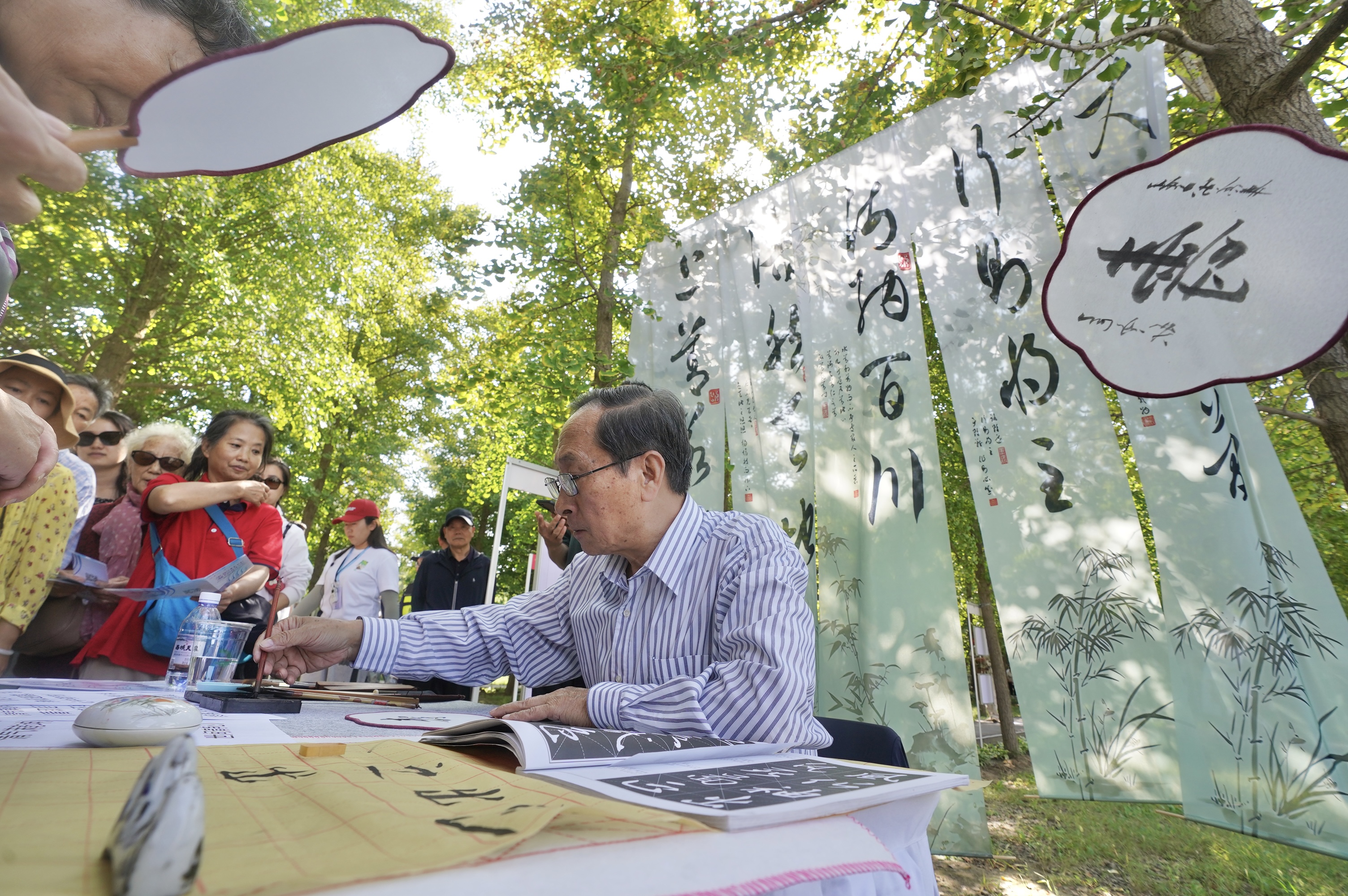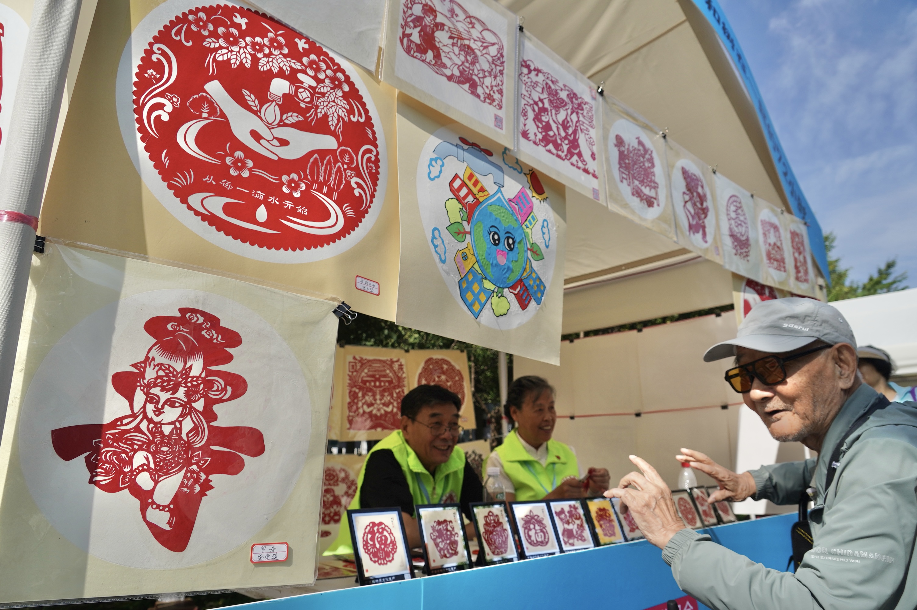 在漫画与书法作品展示区,以“新中式国风”为设计理念,共展出来自全球35个国家和地区,近200幅(组)漫画作品,生动诠释了全球节水行动的共识与合力。