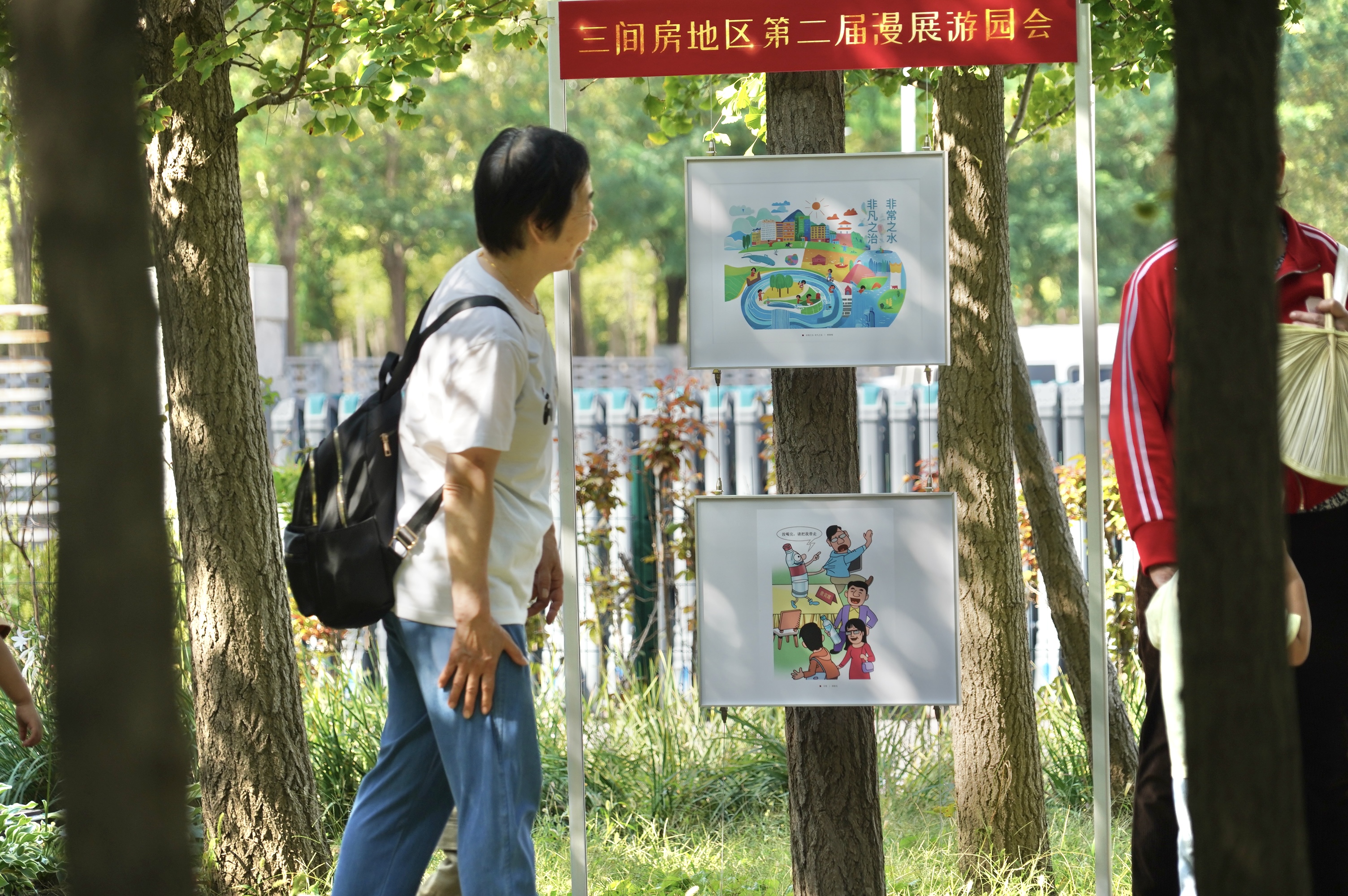 此次活动特别精选展出北京市大中小学优秀节水主题漫画56幅。潞河中学初二学生张思佳的四格漫画作品《滴水不漏,未来可期》,小水滴化身节水卫士讲述节水故事,引发观众共鸣。