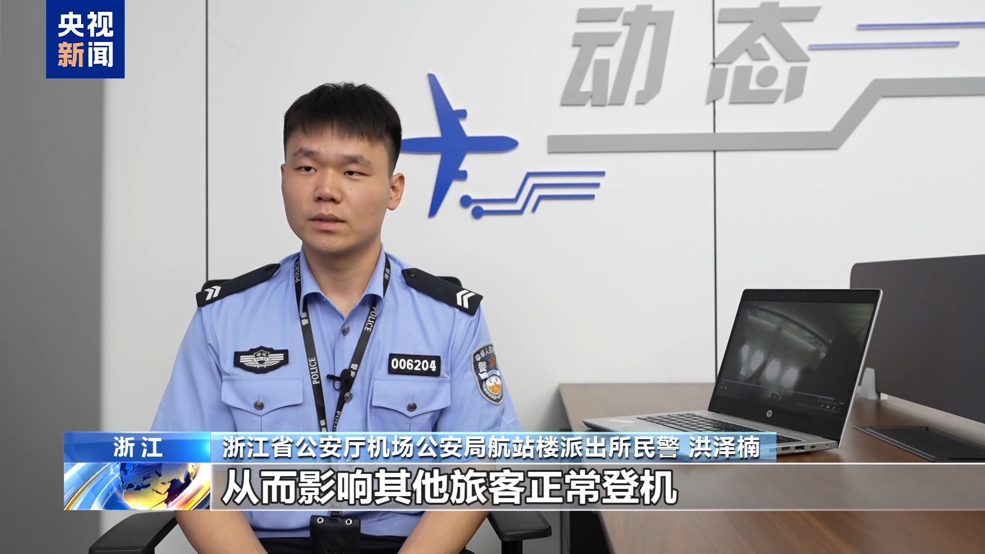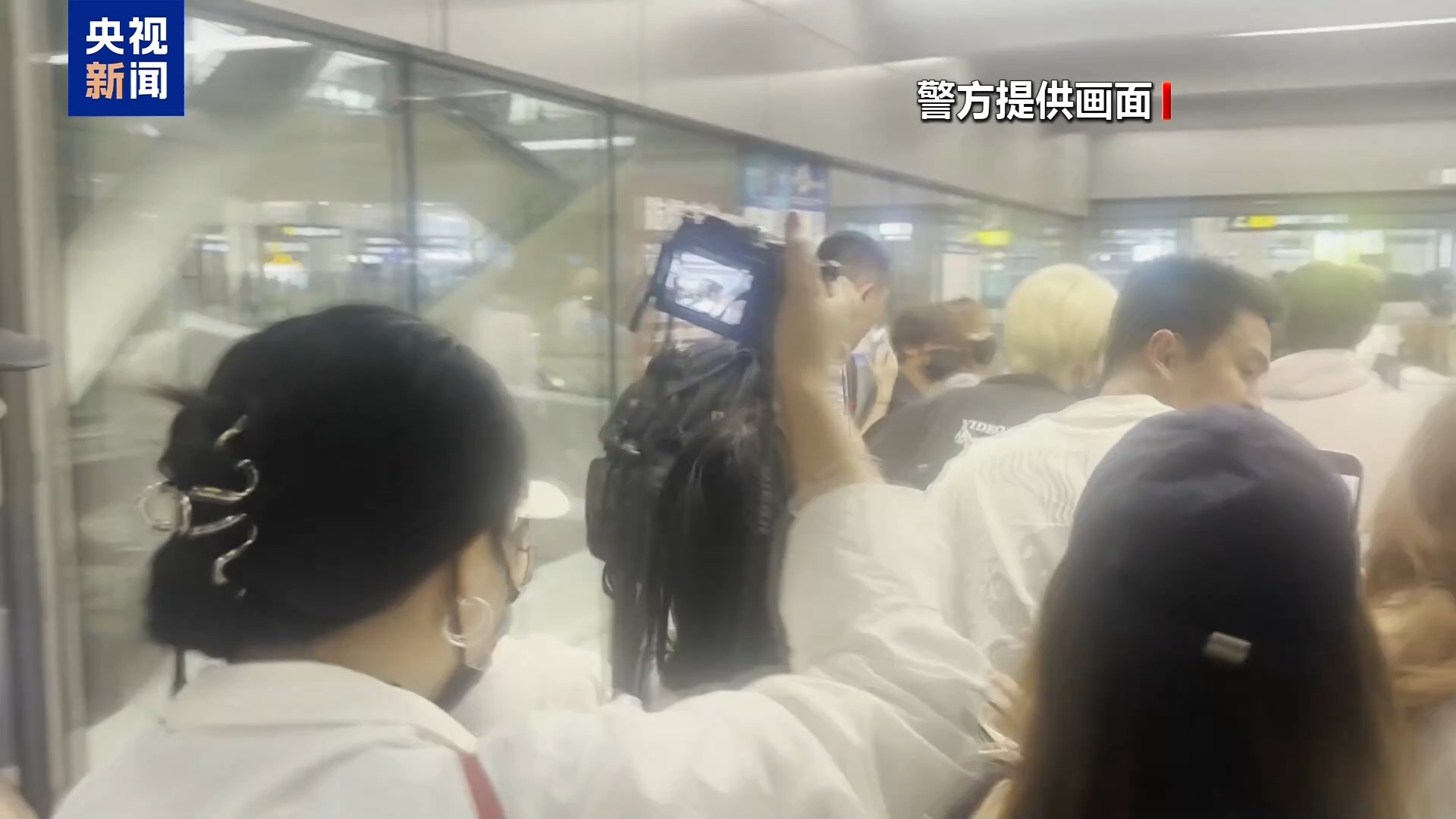 浙江省公安厅机场公安局航站楼派出所民警 洪泽楠:尽管机组工作人员不断劝阻他们,尽快回到自己的座位,不要堵塞通道,从而影响其他旅客正常登机。但是这些粉丝仍然不听劝阻,把通道整个堵死,对于一些旅客的合理诉求,他们也不管不顾。