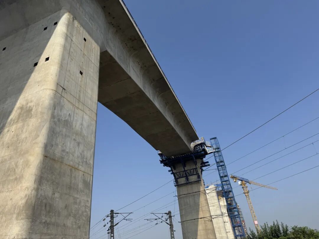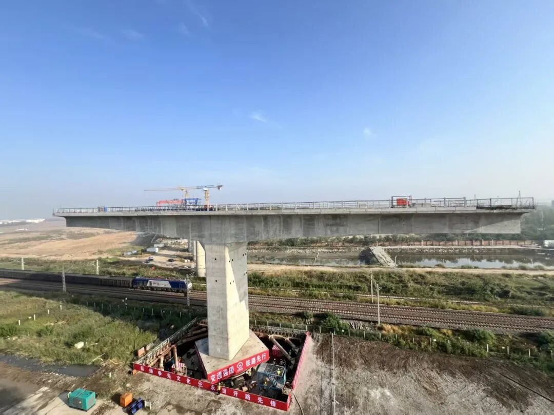 9月25日,京滨城际铁路东丽特大桥跨北环铁路连续梁在历时49分钟的施工后,顺时针旋转53度,顺利实现转体对接,为后续开展架梁及铺轨施工奠定了坚实基础。