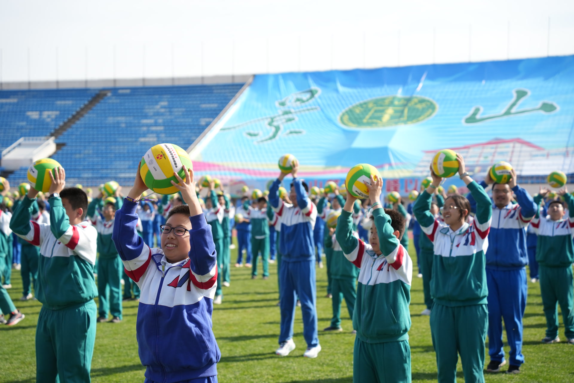 排球是北京景山学校的传统体育项目,该校排球队多次斩获全国冠军。体育节上,1000名来自不同年级的学生,手持排球,整齐划一地完成各类排球动作;上千个排球在不同学段学子手中抛接自如,宛如一道道流动的风景线,掀起体育节上的一个小高潮。