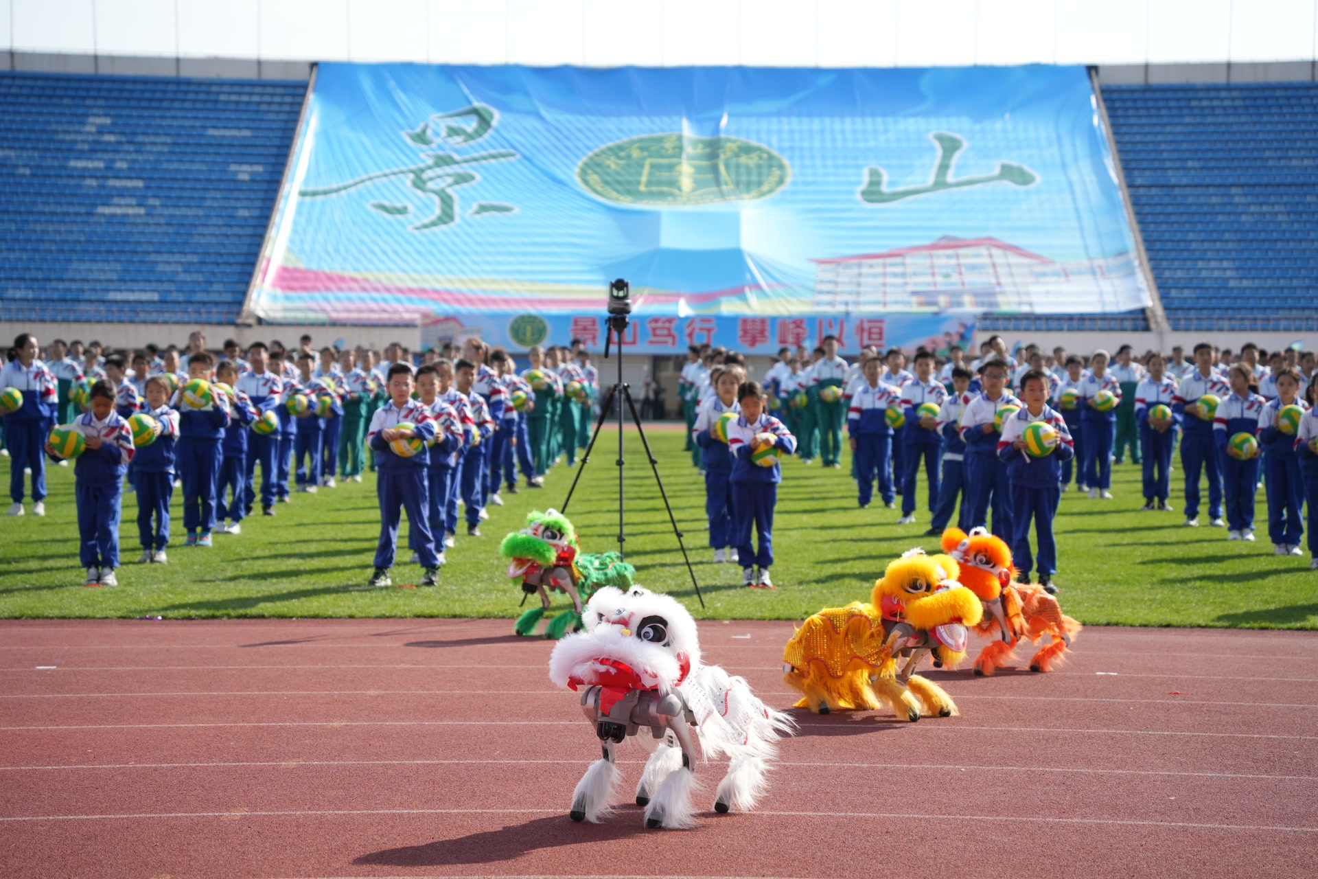 机器人的加入让体育节多了几分“科技感”。3名穿上小学、初中、高中校服的人形机器人,与一年级学生展开50米短跑对决。机器人的精准步伐与孩子们的奋力冲刺形成奇妙对比,场边欢呼声此起彼伏。4条灵活的机械狗扮成“小狮子”,与真人舞狮队同台跳跃、摇头摆尾,给师生带来连连惊喜。