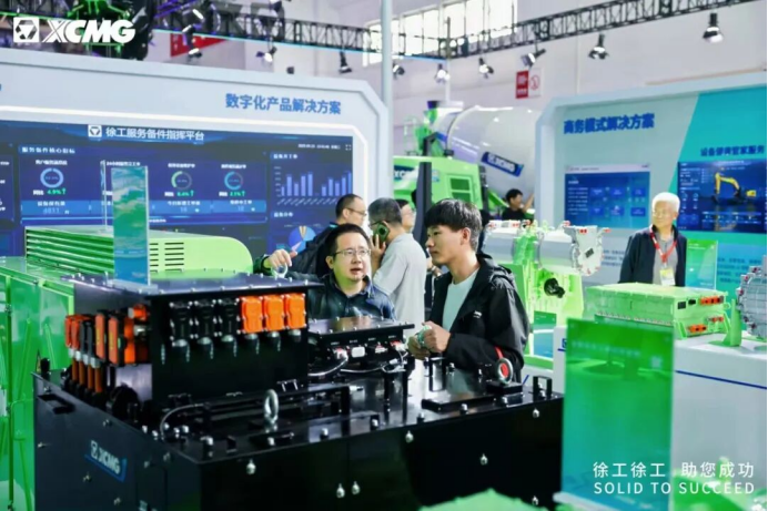 徐工展出覆盖整车、零部件及场景解决方案的全系新能源产品,构建绿色全生命周期闭环。