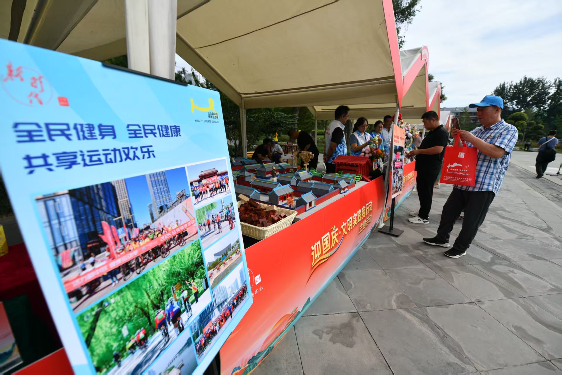 现场还设置了展示服务区。在非遗文化展示体验区,市民参与剪纸、毛猴等非遗技艺体验,巧手翻飞下,一件件祝福祖国的主题作品呈现眼前。在文明实践生活圈展示区,文明实践书香驿站、白领驿站等城市副中心8类文明实践特色阵地亮点纷呈,充分展现了副中心“15分钟文明实践服务圈”建设成果。来自北京服装学院的特色文创展示区更是人气爆棚,他们将设计的九三阅兵观礼包同款带到了现场,受到市民群众喜爱。