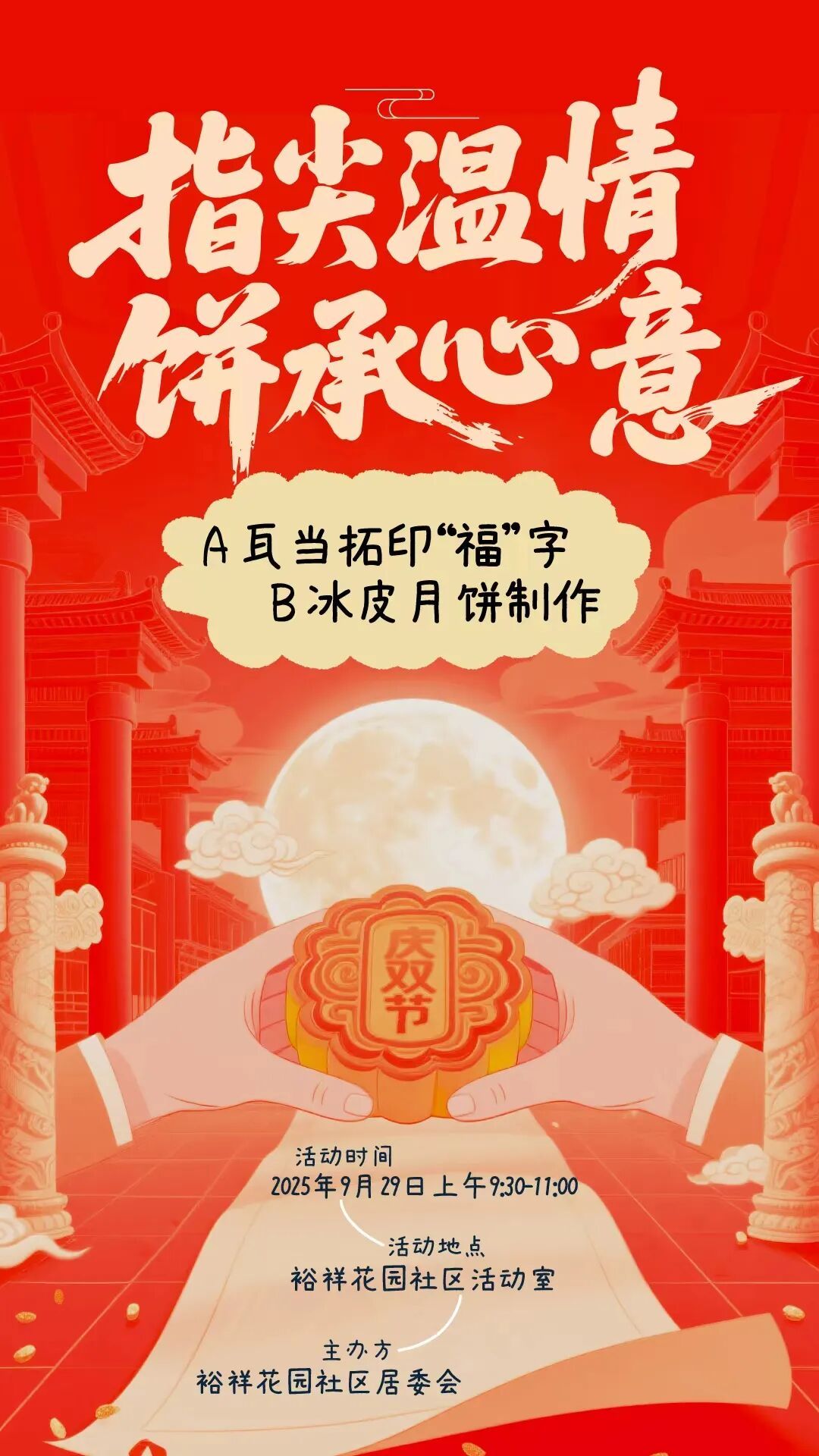 现场可以体验瓦当拓印“福”字、多种口味冰皮月饼制作等趣味活动,让中外居民在协作互动中分享乐趣,弘扬中华优秀传统文化,营造温馨友爱与积极向上的氛围。