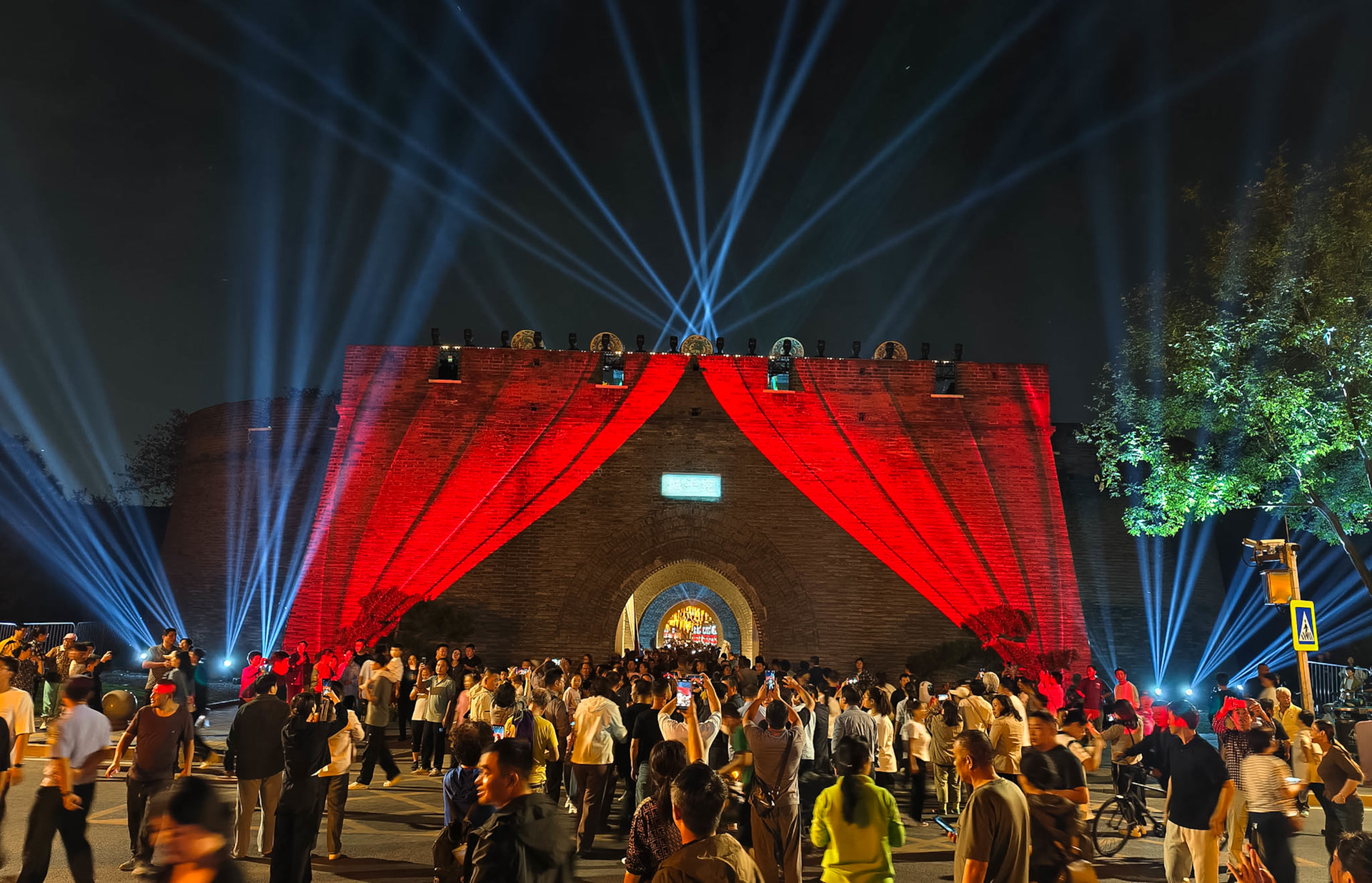 光影秀落幕之际,宛平城西城门缓缓开启,一队身着明朝铠甲的兵士从城中走出,中间骑马的“将军”下马,恭迎八方来客,“砖石铭刻千秋事,请君共赴宛平城!”