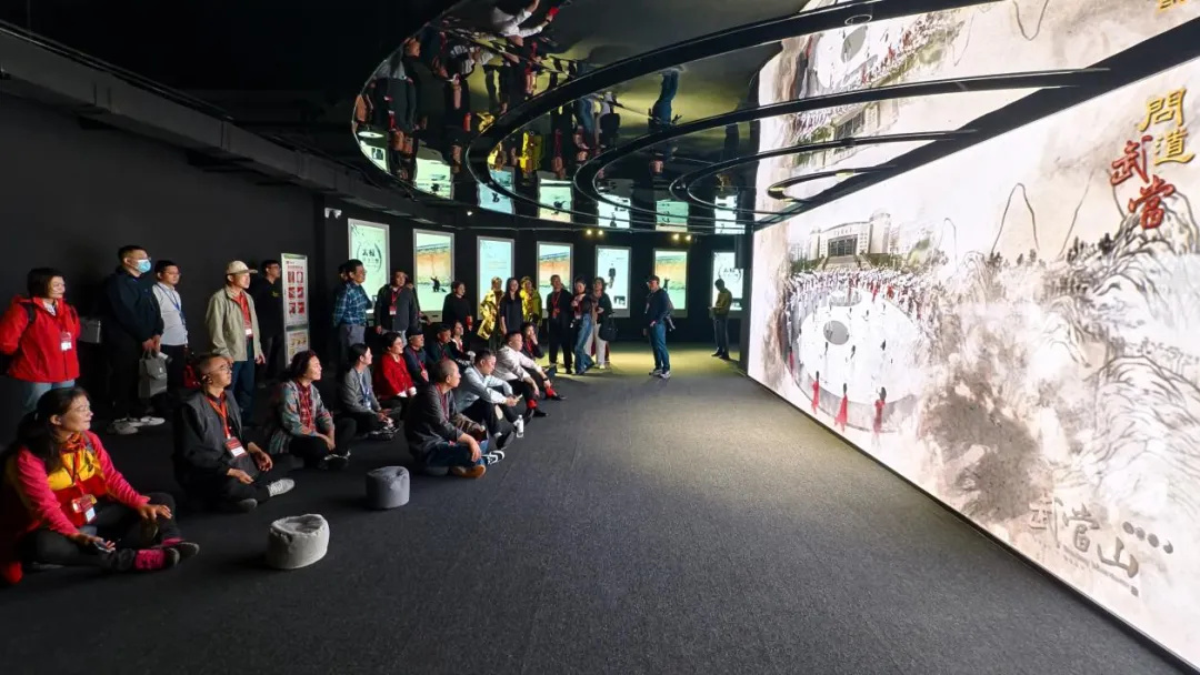 “问道武当”数字客厅结合虚拟和现实的文化体验项目,用现代科技手法全景沉浸式展示八百里武当美景及九宫八观等圣境,让游客能全面快速了解武当,产生强烈震撼的效果。