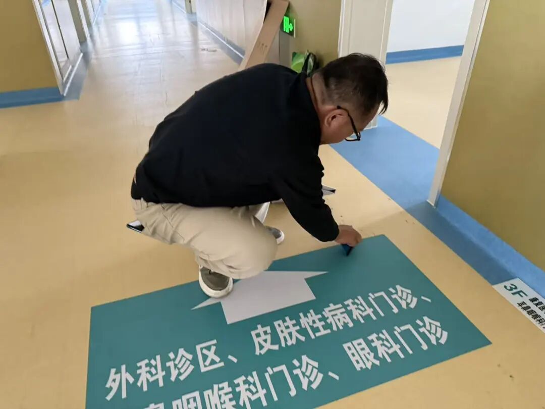 在北京同仁医院门头沟医院永定分院施工现场,施工人员正在铺设医院大门入口旁的道路。走进医院主体内部,整体环境宽敞明亮,部分诊室标识已经安装完成,空调、监控等基础设施均已到位。施工人员正在进行剩余标识张贴工作,方便投入使用后患者快速识别就医路线。在检验区域,医务人员对各类医疗设备进行细致检查与调试,确保设备运行精准稳定。