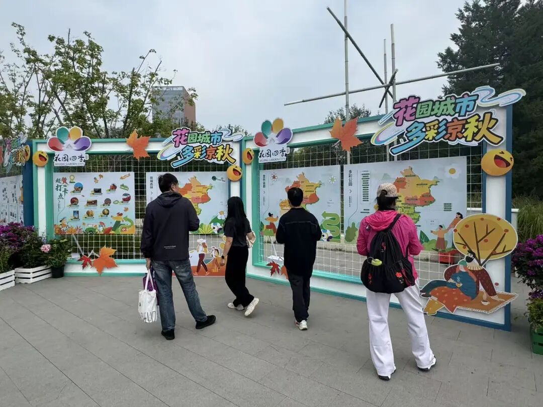 早晨秋雨点点,给草木繁茂的四得公园带来清新与凉意,不少市民游客驻足“多彩京秋”赏秋点位、线路等推荐展板前,开始规划自己的秋日出游安排。“我这正看着琢磨琢磨十一去哪,这儿介绍得非常清楚,我觉得北京秋天应该是北京最好的季节之一,以前看彩叶树种只能去香山,现在选择会比以前多很多,刚看到日坛到东坝那个(路线),都挺好的,地铁也非常方便。”“北京秋天那就一绝,有的是公园,你就转吧,玩不完,看不完的景。”市民们说。