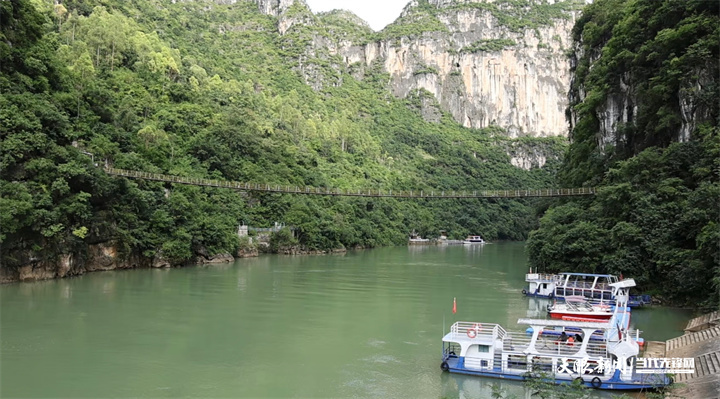 峡谷底部,花江铁索桥静卧江面,百余载岁月在铁链上刻下锈迹斑驳的印记,却依旧稳稳架起两岸。这座老桥与上方的花江峡谷大桥遥遥相望,一端系着过往,一端连着未来。它不仅是历史的见证者,默默记录着昔日山区百姓,1935年红军长征途经时攀索渡江的艰难,更成了时代的参照系:当“钢铁巨龙”般的新桥横跨峡谷,老桥的斑驳锈迹与新桥的青绿釉彩相映,恰好映衬出上方大桥所承载的希望与新生,让“天堑变通途”的变迁愈发真切。
