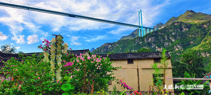 从林国权的民宿往上看,花江峡谷大桥成了院子里最美的风景。