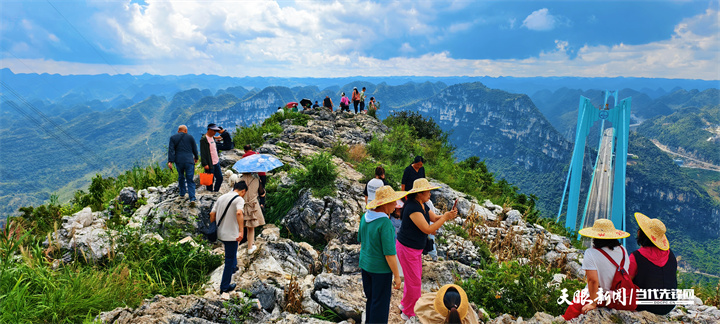 还未通车,花江峡谷大桥周边已经涌入无数游客前来打卡拍照。