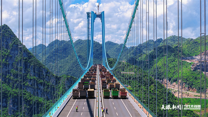 正午时分,所有试验车分批次驶上桥面。指挥人员对着对讲机喊得嗓子沙哑,却始终保持着挺拔的姿态。这就是贵州的建设者——在高温里坚守,在细节里较真,把对桥梁的责任刻进了每一个数据、每一次检查。