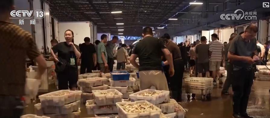 这两天,东海开渔后的第一批海鲜陆续回港。在浙江舟山5号码头记者看到,工人们熟练地将海鲜分类装筐,搬运上岸,采购商们马不停蹄,将海鲜运送至附近的批发市场进行销售。