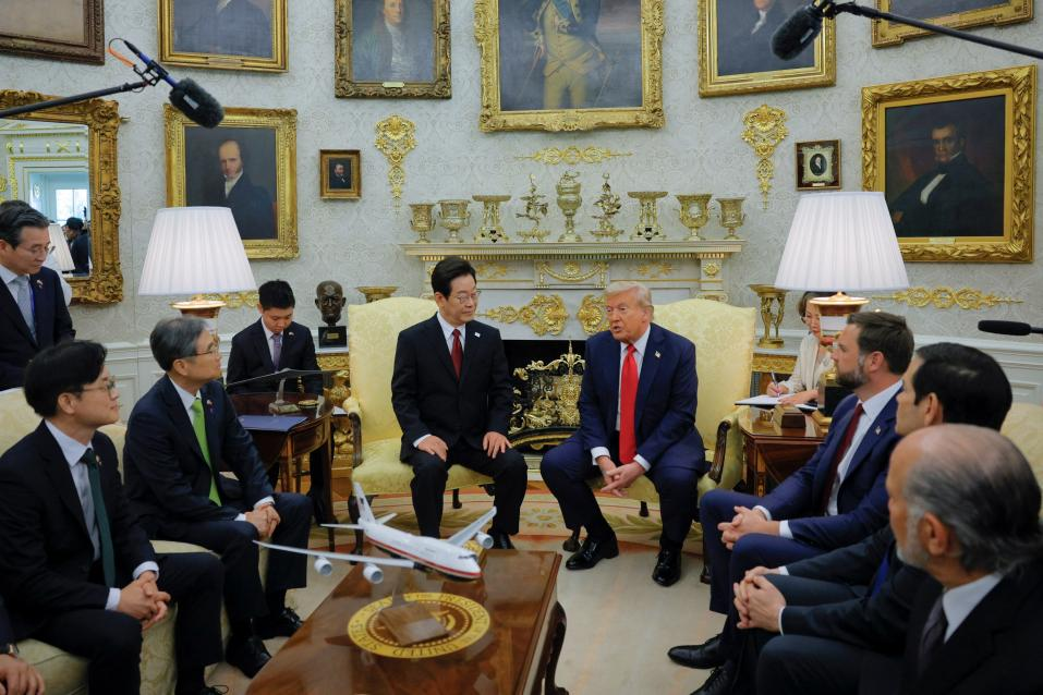 当地时间8月25日,韩国总统李在明到访白宫与美国总统特朗普会晤。图源:外媒