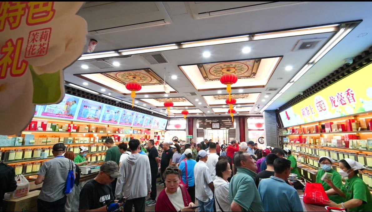 “这儿的茶地道、喝着清口、舒服!”看着店员熟练地把茶叶用纸包装好,拎着回家,是许多北京人童年记忆里带着馨香的画面。浅浅嗅闻一瞬,浸润了成千上万朵茉莉花魂的味道,隔山跨海扑鼻而来。