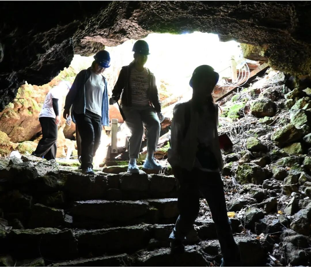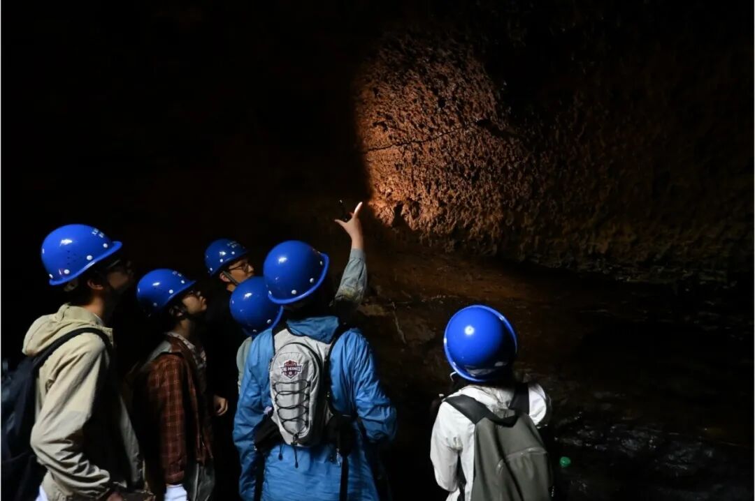 在“地球物理野外实习”课程中,同学们不仅要学习熔岩洞地质演化、行星环境模拟等理论知识,更要亲手开展实地探测实验。