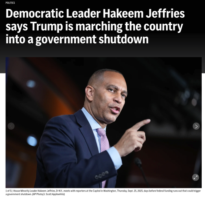 △美联社报道,美国国会众议院民主党领袖杰弗里斯指责特朗普是混乱制造者。而众议院共和党籍议长约翰逊等则表示,如果民主党放弃他们的要求,政府关门就可以避免。