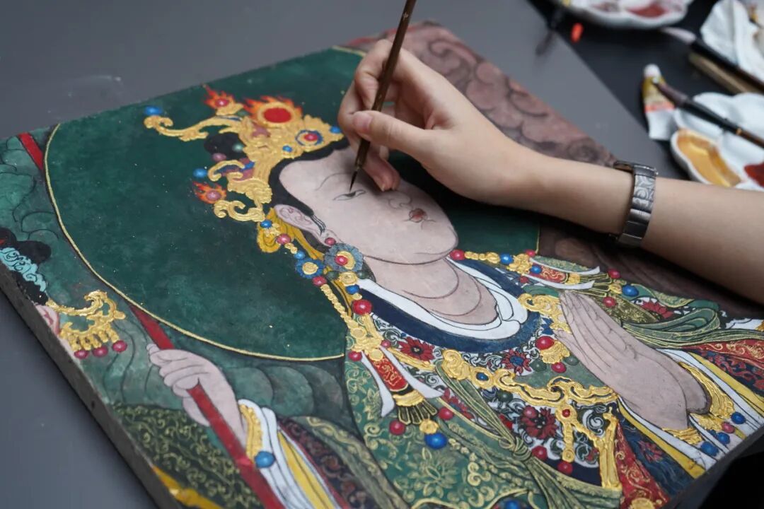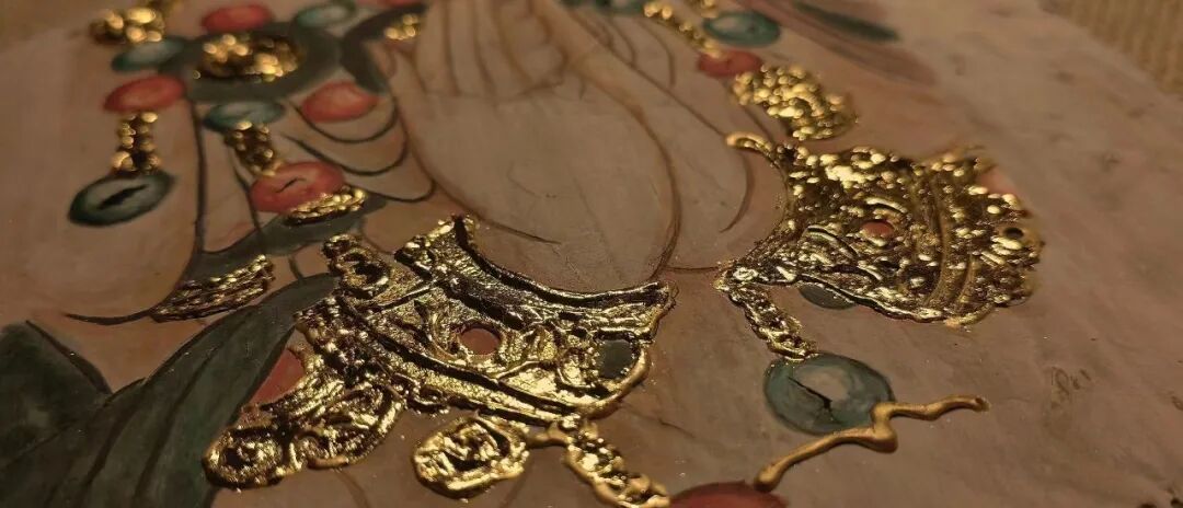 10月7日下午,沥粉堆金工艺练习,从蜿蜒细腻的沥粉线条,到闪耀的金箔,按照传统壁画制作步骤,享受艺术创作带来的无限乐趣。