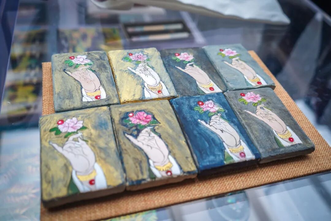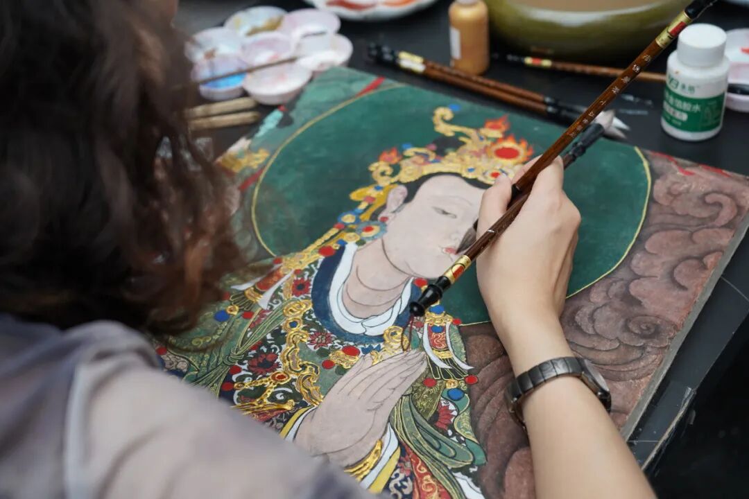 团扇绘制使用多种颜料,再寓意美好的团扇上,精心勾画线条,细致涂染颜色,感受传统壁画绘画工艺的独特魅力。