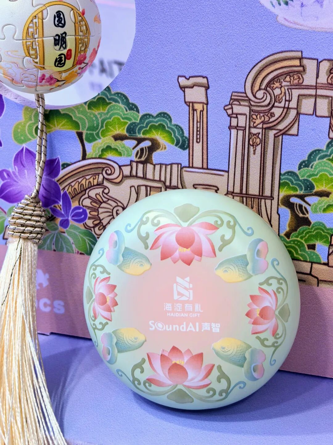 与声智科技推出的AI耳机联名款,以圆明园荷花为灵感,荷粉、柳绿、鹅黄三色交织,让千年荷风借声学智慧重焕新生。