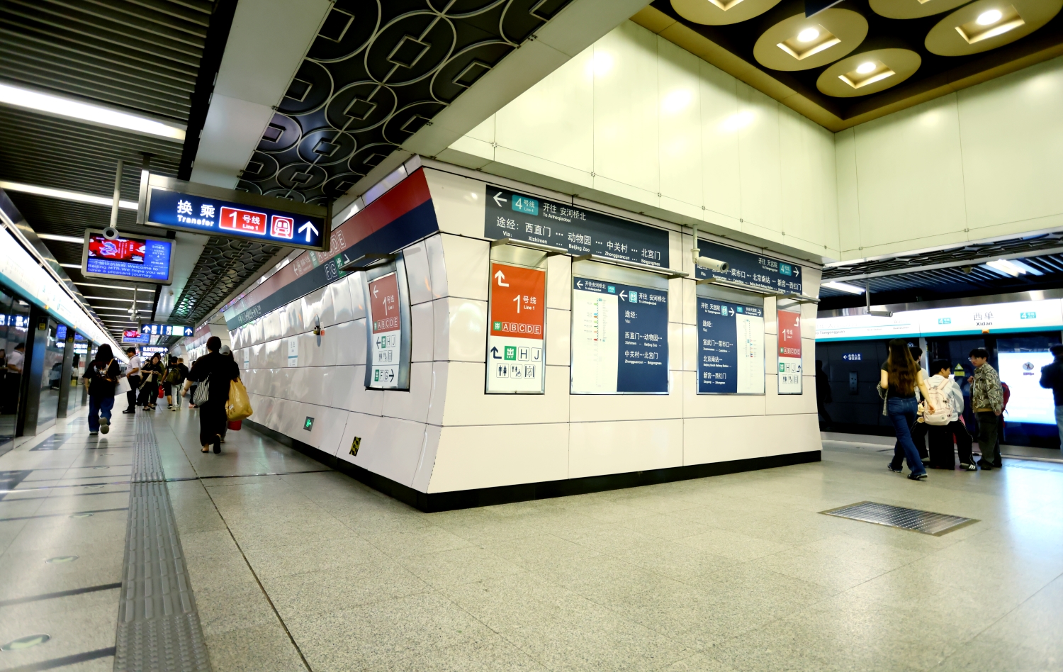 西单站地处繁华商圈,节假日日均客流量达11.6万人次,此次换新以乘客实际出行需求为导向,结合车站结构特点,系统优化标志布局和服务细节,从指引清晰度、信息整合度和视觉统一性三个维度提升乘客出行体验。