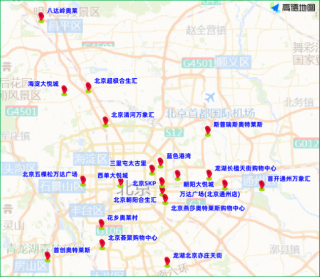 大悦城、奥特莱斯、万达广场、世纪金源、合生汇、乐多港、龙德广场、永旺商城、西红门荟聚、密云万象汇等商城,及大郊亭、十里河、崇文门、西单、王府井、前门—大栅栏、马连道、北四环宜家、公主坟翠微、海淀五道口等商圈最为热门,周边道路短时车流集中。
