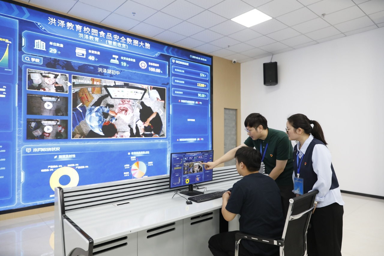 江苏省淮安市洪泽区纪委监委深化整治“校园餐”领域突出问题,推动改革食材集采配送模式,搭建阳光饮食服务平台,加强全流程监管。图为该区纪委监委干部在食材集采中心了解情况。陈凯 摄
