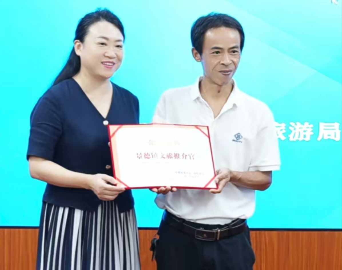 很快,9月28日,景德镇市文化广电旅游局官方账号发布视频称,授予李俊永“景德镇文旅推介官”称号,并颁发了荣誉证书。他在景德镇文旅推广座谈会上说:“马上就是国庆了,我们工作的重心是,严格把控食品的安全,把控卫生问题。”