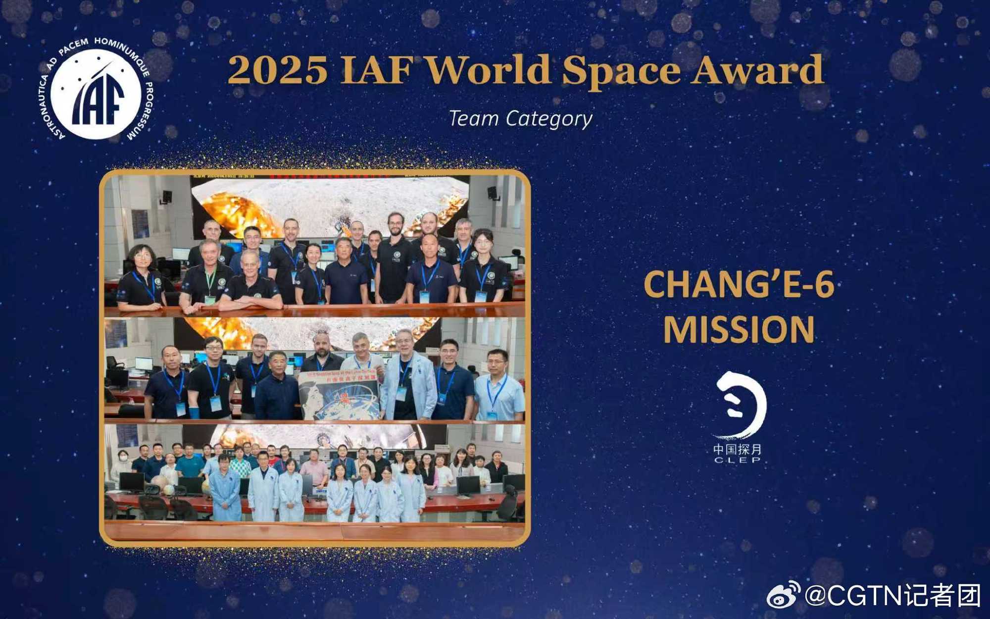 9月28日,第76届国际宇航大会在澳大利亚悉尼正式开幕。国际宇航联合会(IAF)在开幕仪式上正式颁发了世界航天奖,中国嫦娥六号任务团队荣获2025年度国际宇航联合会世界航天奖团体组奖项。嫦娥六号任务总设计师胡浩和国家航天局探月与航天工程中心主任关锋代表团队上台领奖。
