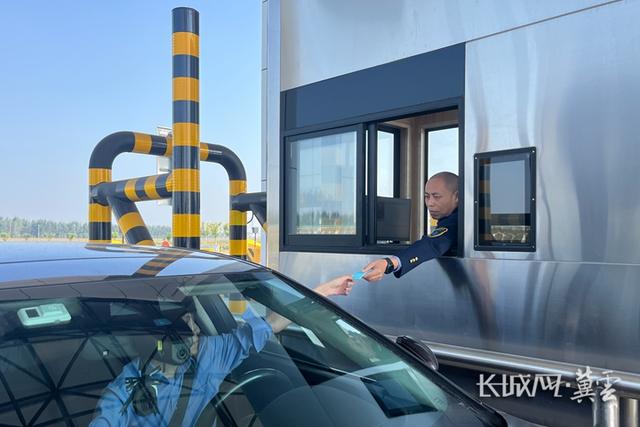 驾驶员接过通行卡。长城网·冀云客户端记者 宋建军 摄