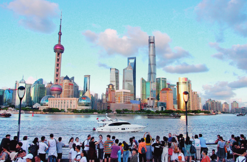 游客在上海外滩欣赏浦东陆家嘴景色(资料照片)陈飞摄 / 本刊