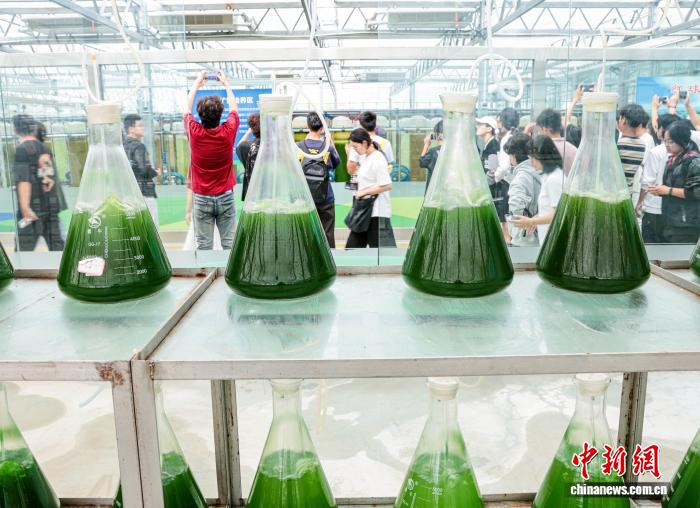 在山东荣成爱伦湾国家级海洋牧场,大学生参观微藻养殖车间,在研学中感受海洋文化。(资料图)李信君 摄