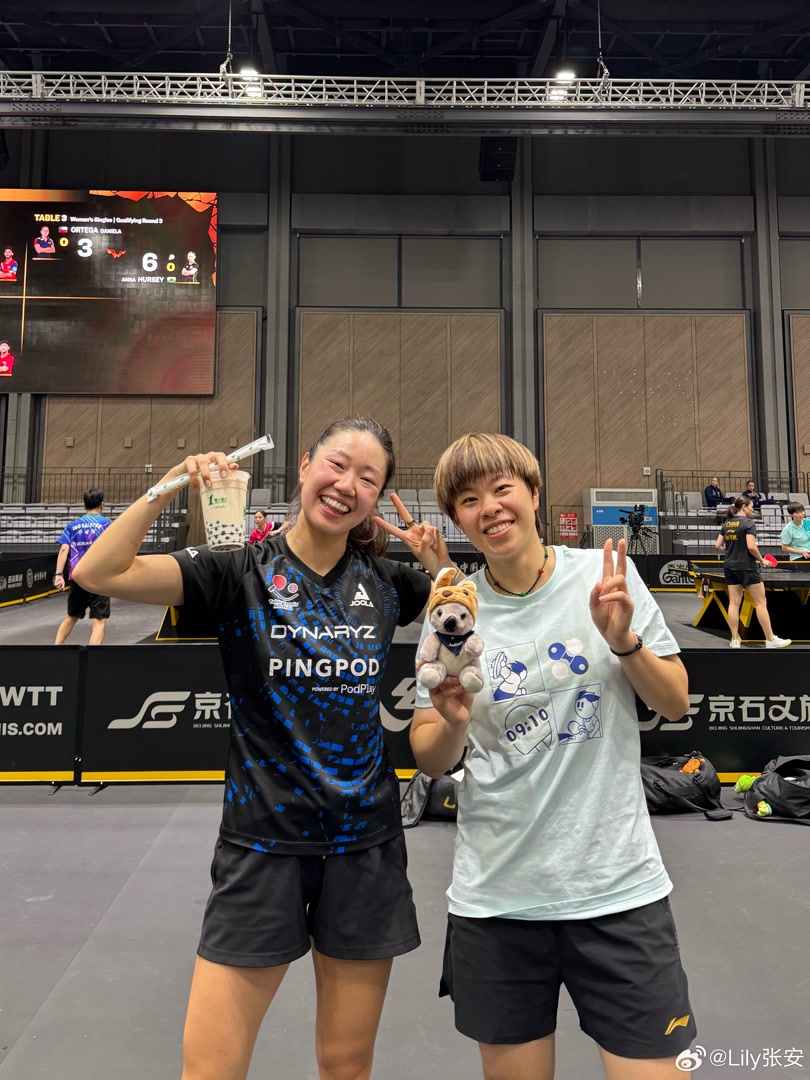 王艺迪则笑称,自己虽然英语不太行,但本场比赛胜在搭档“中文说得好”。据她介绍,两人虽然此前经常在比赛中见面,彼此关系很熟,但没配过双打,不算很了解。“我也很久没有跟外协会球员配了,感觉很特别。赛前我俩只合练了一节课,比赛时整体来说比训练时好了很多。”王艺迪说了好几次,能赢下比赛很开心,“比分虽然很胶着,但因为她中文好,所以关键时刻沟通很顺畅,执行战术也就比较坚定。整体来说很完美。”