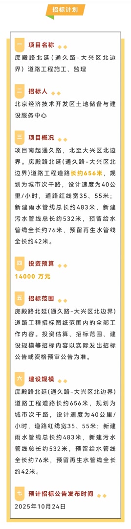 近日,从北京市公共资源交易服务平台了解到,位于大兴区旧宫镇的庑殿路北延(通久路——大兴区北边界)道路工程迎来新进展。工程道路长约656米,预计投资1.4亿元,建成后将打通四环路交通瓶颈,缓解旧宫与瀛海镇交通压力。