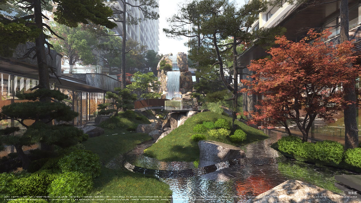 景观上,璞樾提出“当代兰亭·一里世界隐园”,打造了千米水系贯穿的风雅疗愈意境,营造可游、可赏、可居的园林体系。整体景观延续六善的慢生活,承袭安缦的宁静哲学,把疗愈体验融入北京CBD核心。