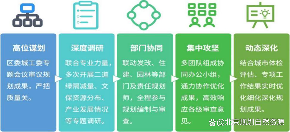 昌平分局将乡镇国土空间规划作为落实分区规划、推动乡村振兴的核心抓手,构建“1+5”全链条工作体系——建立“1”个区镇两级专班加强统筹平台,明确“区政府组织、镇政府实施、分局指导、责师参与”责任体系,制定工作方案并定期调度;“5步法”闭环管理,通过高位谋划、深度调研、部门协同编制审查、集中攻坚优化、结合体检评估动态深化,高效推进规划编制完善。